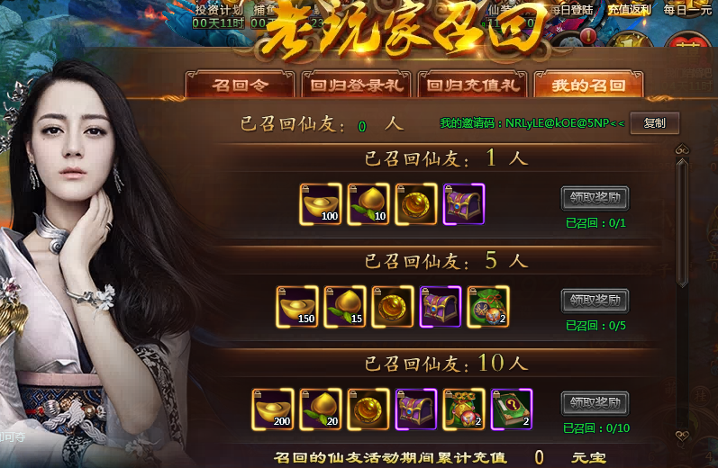 5.召唤者可通过获得被召回老玩家的激活码可获得召回数量,并根据召回数