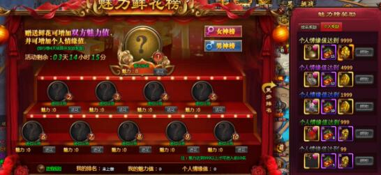 【活动内容】:赠送鲜花可增加双方的魅力值,并可增加个人的情缘值,情缘值达要求时,可领取奖励