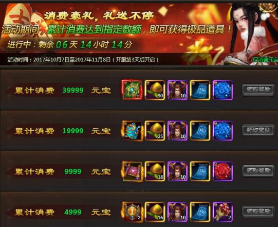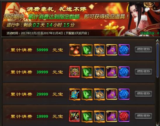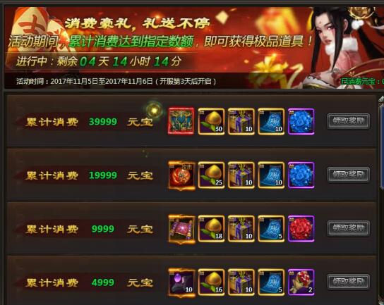 每消耗100元宝,可领取1张99祝福贺卡 |