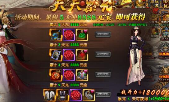 每提升15W战力,可领取1张999祝福贺卡 |